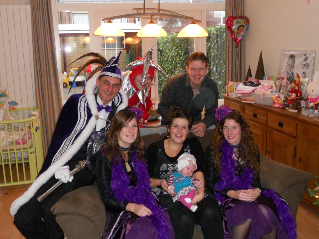 Het eerste presentje is uitgereikt aan Lotte Huijbrechts, dochter van Erwin en Jolanda, door Prins Dominicus I met zijn D-team. Onder het genot van beschuit en muisjes werd het presentje door de Prins, zijn hofdames en de nar overhandigd. Met dit presentje zullen de allerkleinste geen kou krijgen tijdens het kijken van de optochten in ’t Aopelaand!