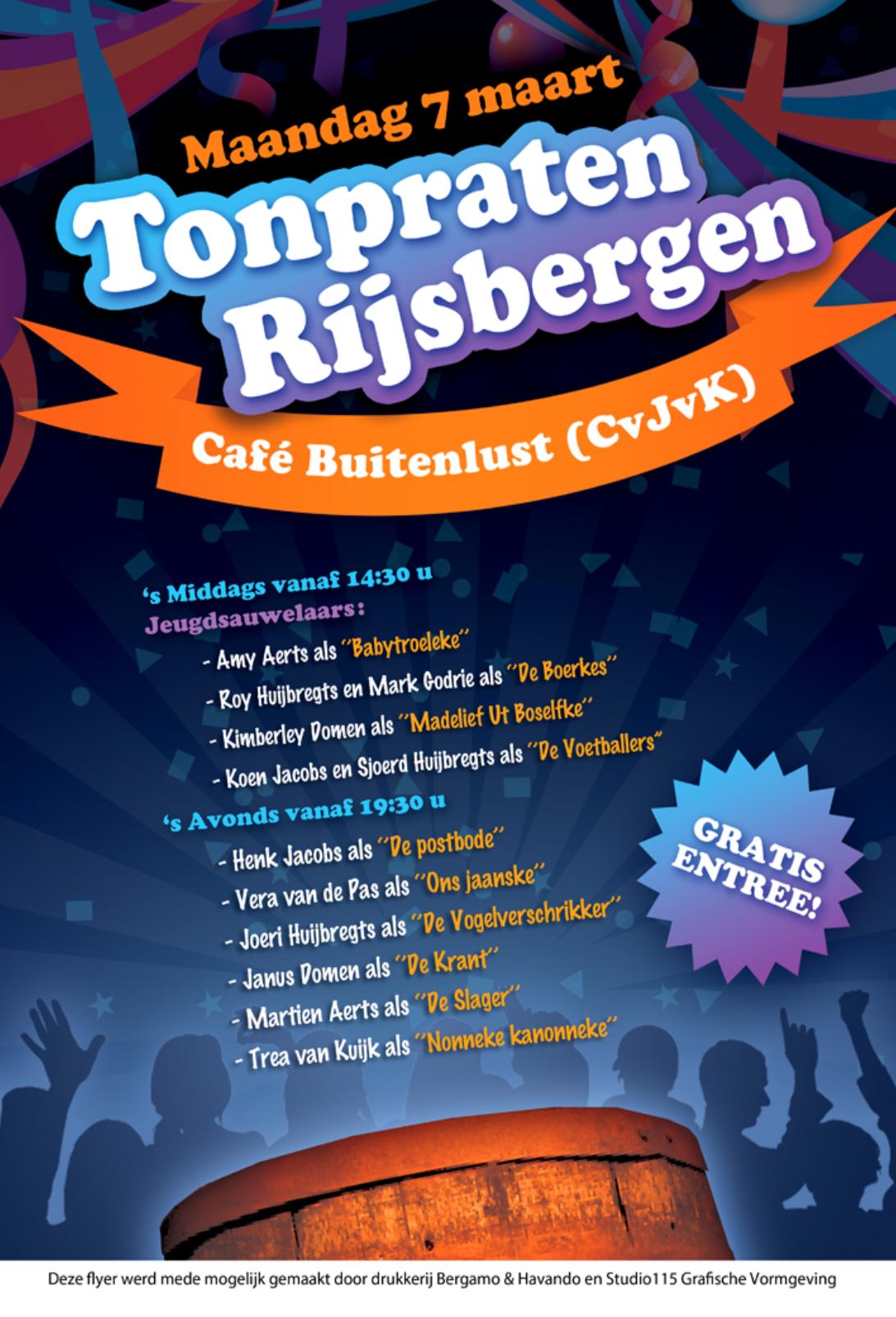 Wie op carnaval maandag eens ouderwets wil lachen zit bij buurtschap Achtertiggelt goed. Na het grote succes van verleden jaar organiseren zij voor de tweede maal het 'Resbaargs Tonpraten'.